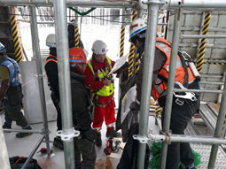 After scaffolding installation is completed, the installer’s supervisor conducts an internal inspection. If no defects are found, the inspector is requested to perform a formal inspection based on the approved Scaffolding Work Plan. The inspector shall verify that the scaffolding is constructed in accordance with the design and that fall and drop prevention measures are properly implemented, then submit the inspection results to the site supervisor.